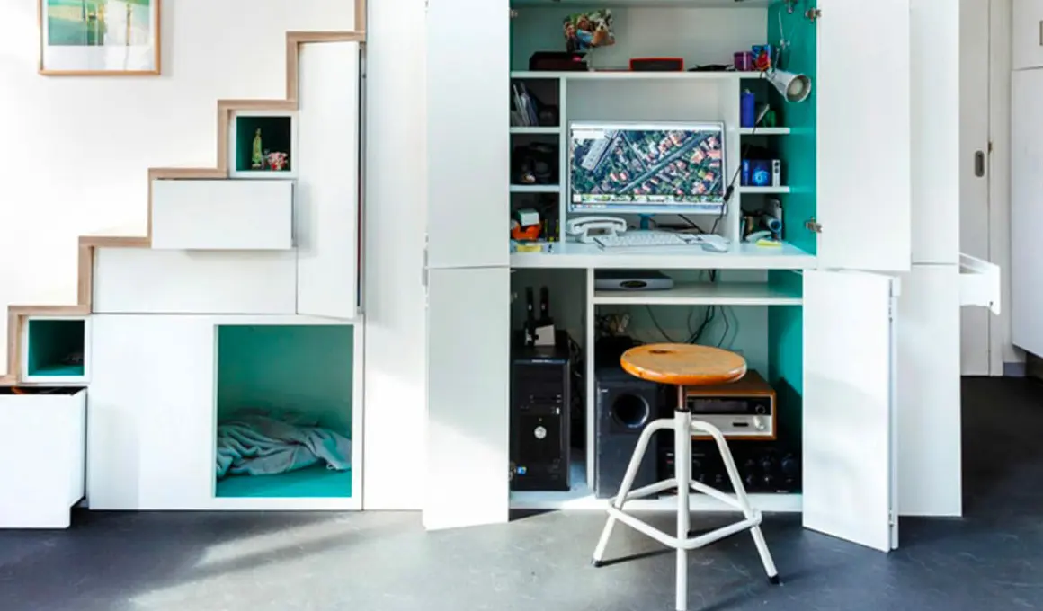 1. Transformer un placard sous l’escalier en bureau fonctionnel
