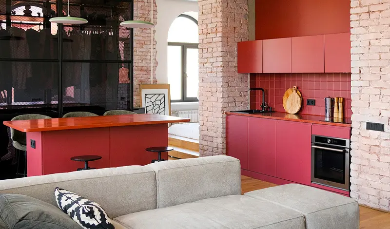 deco appartement minimaliste rouge noir cuisine
