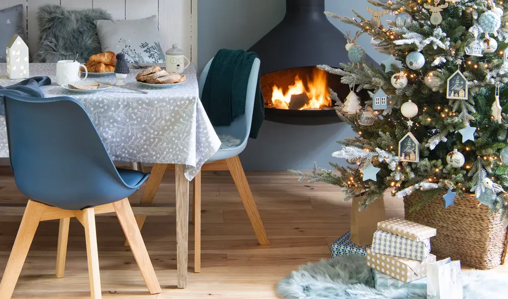 La palette de la déco bleue offre une infinité de combinaisons. Selon les associations, le bleu peut évoquer un Noël glacé et poétique ou une ambiance plus luxueuse et sophistiquée.