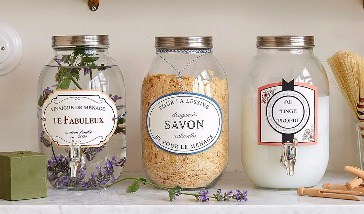 Un sèche-cheveux chauffe la colle et facilite le décollage des étiquettes récalcitrantes. L’huile végétale ou le produit vaisselle dissolvent les résidus de colle. Pour les bocaux en verre, l’eau chaude savonneuse suffit généralement. Un grattoir plastique évite de rayer la surface pendant le nettoyage.