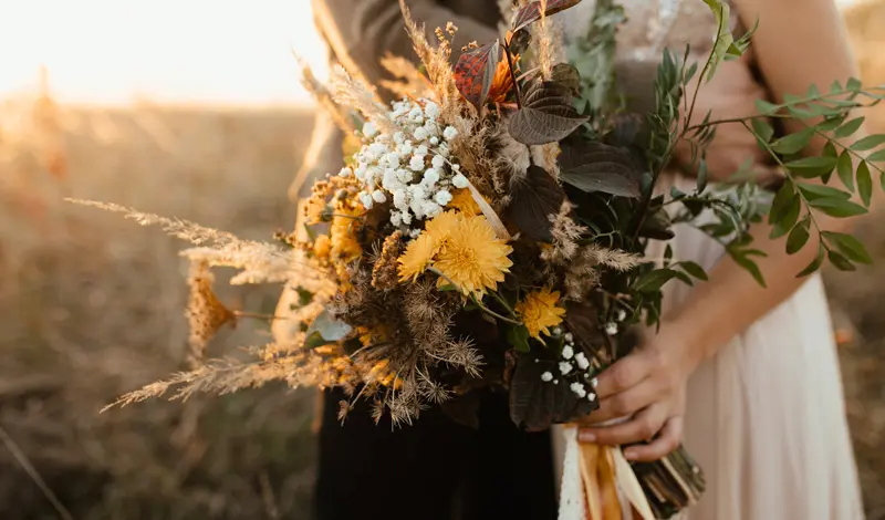 Pour les compositions florales, oubliez les arrangements trop structurés ! Préférez des bouquets généreux et asymétriques avec des fleurs des champs, des herbes aromatiques et des feuillages sauvages. Le côté imparfait et spontané est exactement ce qui fait le charme du style bohème.